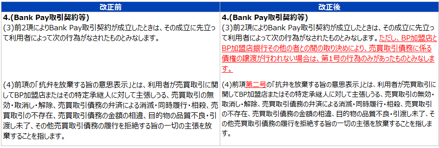 BankPayを活用した資金返済ニーズに対応するため、以下の条項を改正いたします。
